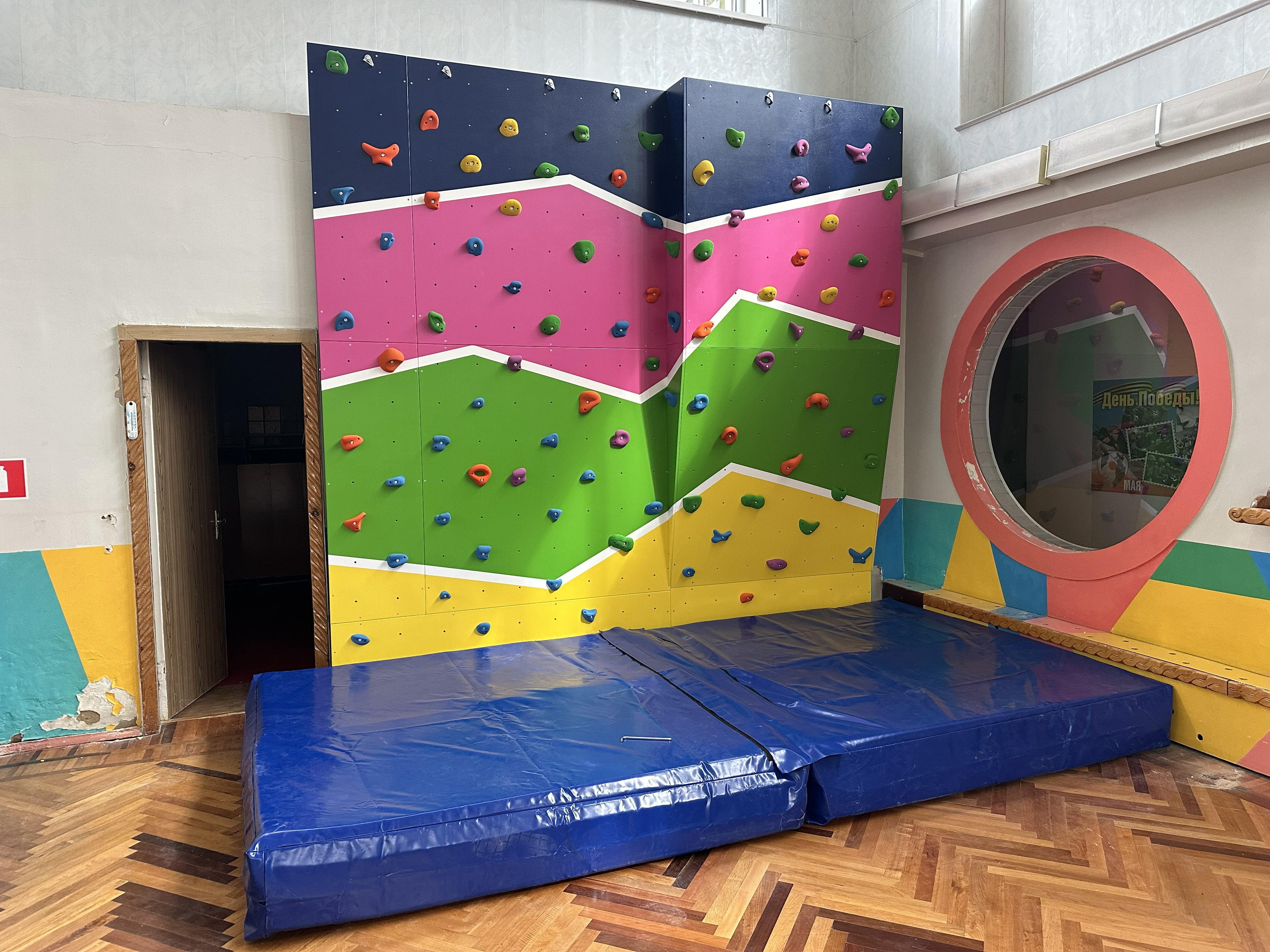 Нашей командой был построен скалодром для самых маленьких спортсменов в детский сад. Тем не менее данный скалодром имеет различные уровни сложности, что позволяет увеличивать интенсивность тренировок для спортсменов, которые преуспевают в скалолазании.